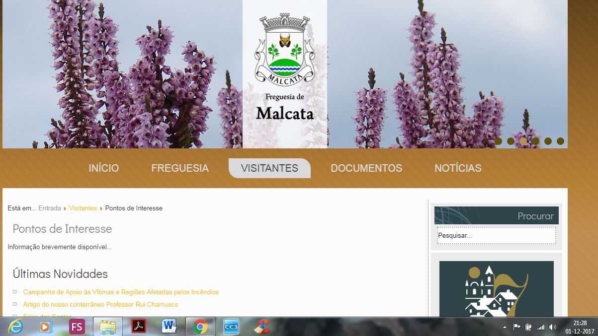A página da internet da Junta de Freguesia de Malcata ainda não foi actualizada desde que o novo executivo liderado por João Vítor, eleito pelo PSD, tomou posse. Aqueles que pretenderem consultar, dois meses depois das últimas eleições, para além de algumas notícias e fotografias de alguns eventos nada mais vão encontrar. O link que nos deveria remeter para as informações referentes ao Executivo, Documentos, Actas, Editais, Pontos de Interesse, limita-se a referir uma área “Informação brevemente disponível”. A mesma informação se aplica àqueles que pretendem actualizar-se sobre as Associações e Contactos nem sinal nenhum!